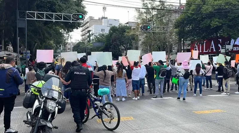 Comerciantes ambulantes del perímetro «B» del Centro Histórico bloquearon la circulación vehicular de la Avenida Cuauhtémoc y el Eje 5 Sur, en el tramo de Eugenia, para exigir una reunión de trabajo en las oficinas de la Secretaría de Economía de la Ciudad de México.